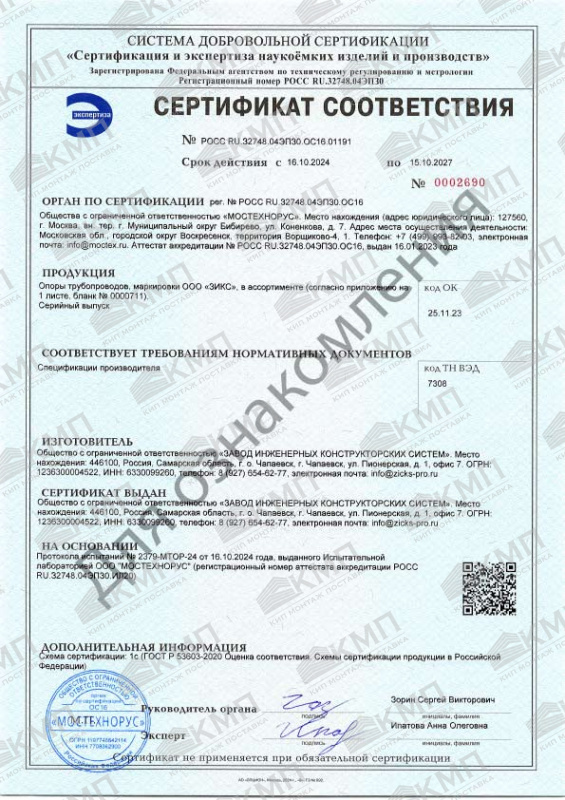 Выражаем благодарность коллективу ООО «Кип Монтаж Поставка» за поставку кабеле несущих систем для нужд Госкорпорации «Росатом» Продукция была изготовлена и поставлена на объект в обусловленные договором сроки. Качество поставленной продукции отмечено, как хорошее и соответствует всем современным стандартам. Требован...