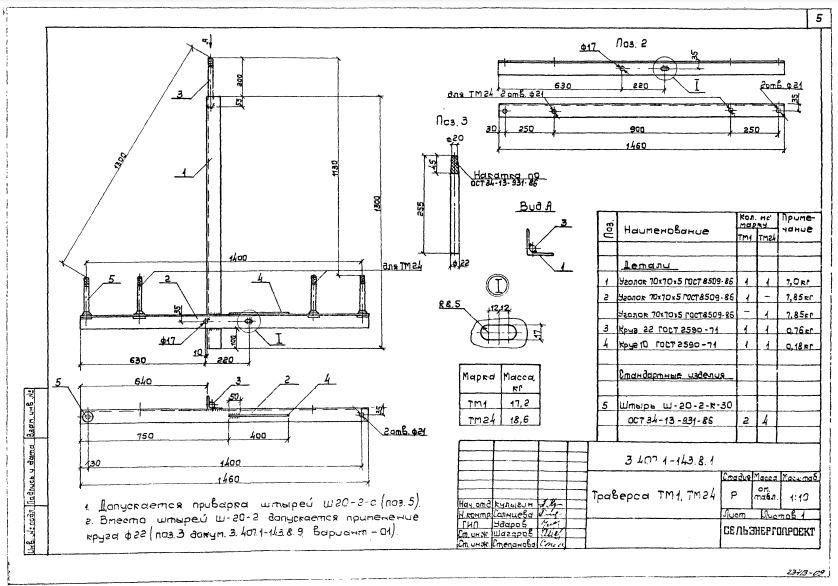 Крепление производится при помощи специальных крепежных устройств — хомутов, тип которых выбирается и зависит от типа стойки. К стойке СВ-105 траверсы ТМ-1 (3.407.1-143.8) крепятся хомутом типа Х-1, а к стойке СВ110 при помощи хомута Х-42.